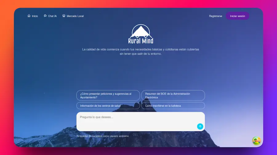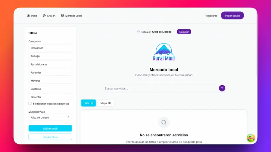 The goal of the project was to create a digital tool for small-town municipalities, centralizing municipal information and facilitating access to relevant data for both residents and visitors. The platform combines an AI-powered chat for consulting official information with a marketplace focused on promoting points of interest, local services, and general municipal information.